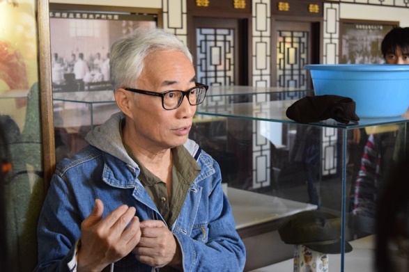 在参观瑞蚨祥店铺时,袁家方先生用自身的经历,告诫大家在大学期间应认真学习,珍惜时间。他认为“十年树木,五年树人”,“四年只是一晃荡”。同学们从这位七旬老人的口中听到这样的话语,不禁深受鼓舞。虽然小雨绵绵,但却阻挡不了同学们的热情,人群中不时传出阵阵掌声。