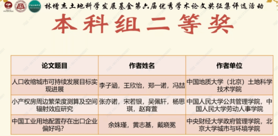 2023年6月25日,由中国人民大学公共管理学院、林增杰土地科学发展基金会同《中国土地科学》编辑部共同主办的“林增杰土地科学发展基金第六届优秀学术论文奖征集评选活动”成功举办。在永利集团官网黄志基副教授的指导下,城市管理专业余姝瑾同学撰写的论文《中国工业用地配置存在出口企业偏好吗?》荣获本科组二等奖。