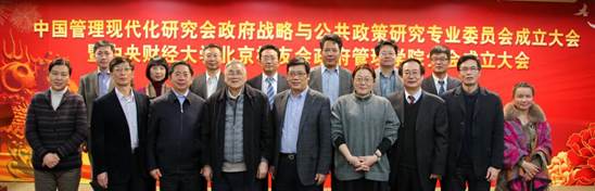 2015年1月10日15:00时,中国管理现代化研究会政府战略与公共政策研究专业委员会成立大会在永利集团3044官网欢迎您中财大厦二层报告同隆重举行。来自北京大学、清华大学、中山大学、山东大学、中央党校、国家行政学院、中国社会科学院、《管理世界》、《中国行政管理》、《中国城市报》、《中国工业经济》等多所高校、多家学术报刊的专家学者及校友代表近130人参加了大会。