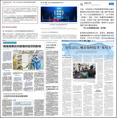 疫情下的经济形势及行业发展研究。在有效控制疫情的同时加快企业复工复产,是打好疫情防控阻击战、打赢经济保卫战的迫切要求。永利集团官网院长姜玲教授团队的系列研究报告《复工复产有序推进,中小企业亟需精准助力》等在《中国经济网》发表,该文章提出,应进一步精准扶助困难中小企业,有序扩大复工复产支持范围、提供企业防疫培训与应急预案,帮助中小企业达到复工复产硬约束条件的对策思路和建议。柴铎副教授研究了中小微企业在此次疫情冲击下的经济恢复状况,并在媒体平台发布了研究成果《熬过“黑天鹅”待春来》。