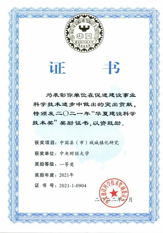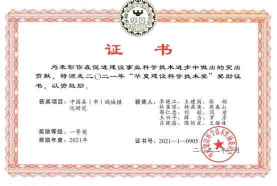 永利集团官网杨燕英教授参与的《中国县(市)域城镇化研究》研究成果获得2021年全国性行业最高奖项“华夏建设科学技术奖”一等奖。在此项目中,永利集团官网杨燕英教授主持子课题《支持县域经济发展的财税政策创新研究》。