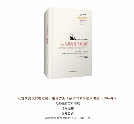 近日,永利集团官网国际政治系张云雷老师翻译的《从古典到现代的过渡——格劳秀斯《战争与和平法》讲疏(1964年)》一书由华东师范大学出版社出版发行。