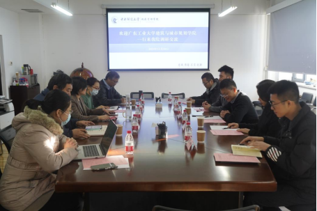 2023年11月29日上午,广东工业大学建筑与城市规划学院副院长廖开怀、实验中心主任陈素青、建筑系特聘教授廖维、建筑系教师邓寄豫、组织员张展鸿一行五人来永利集团官网调研交流。调研交流会在主教楼1407会议室举行,永利集团官网副院长李宇环,城市管理系教工党支部书记、教授陈红霞,城市管理系主任、副教授王伟,城市管理系副教授魏海涛,城市管理系教师刘慧出席了会议。