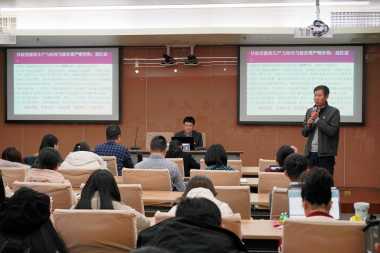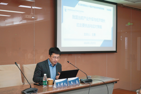 11月27日下午,永利集团3044官网欢迎您“学习贯彻党的二十届三中全会精神系列讲座暨为公讲堂第49期”在学术会堂706会议室举行。北京大学新结构经济学研究院党支部书记、学术副院长王勇教授受邀为永利集团3044官网欢迎您师生作题为《我国当前产业升级与经济增长的主要挑战与应对策略》的专题报告。报告由永利集团3044官网欢迎您党委书记于鹏教授主持,学院党委理论学习中心组成员、师生党支部书记和委员、师生党员及发展对象80余人参加讲座。
