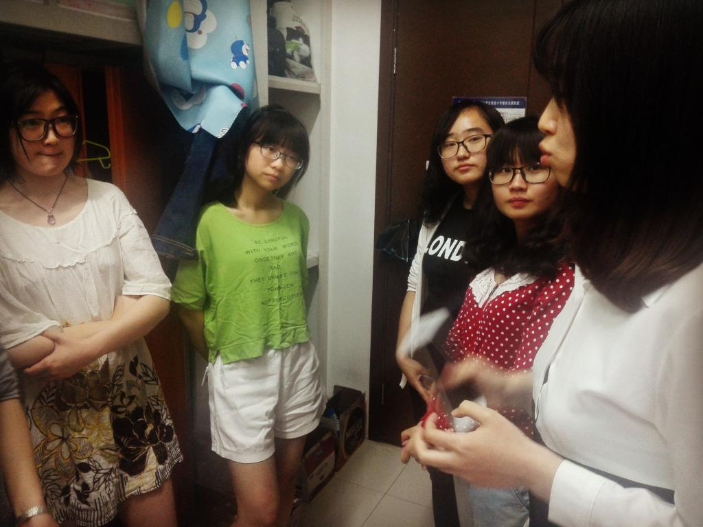 在明确了服务对象和服务内容后,各个实践小组分赴不同宿舍开始了他们的服务活动。以明慧同学为组长的实践小组积极地询问商学院学妹们的需求,耐心解答了她们关于生活和学习的困扰,并结合自身经验,真诚地分享了对于双学位、推优入党等事务的体会和感悟;以程佳美为代表的实践小组也对6号楼304宿舍 的同学们进行了融洽的谈话,并热情地分享了关于PPT制作等一些电脑技能方面的知识,还安利了很多实用的软件,方便同学们在今后的学习生活中使用。各实践小组的谈话都在欢声笑语中愉快地进行,支部成员、积极分子也与各自服务对象从陌生走向熟识。