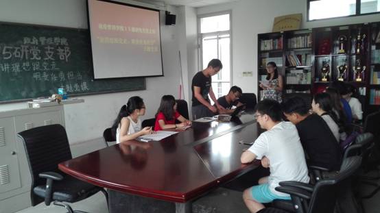 2016年6月22日下午,永利集团3044官网欢迎您15级研究生党支部于沙河校区7号楼313会议室召开主题党课,支部书记任丽蓉以“讲理想跟党走,明责任勇担当”为主题为同学们讲专题党课。