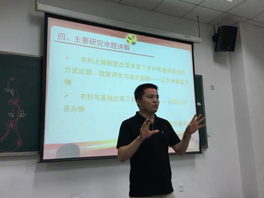 资环系黄志基老师进而就自身专业,向师生们讲解了党的农村土地政策发展趋势,并就近期农村宅基地改革、精准扶贫等热点问题进行了细致的讲解,强调了农村土地利用优化对于国土资源有效利用和生态环境保护建设的重要意义,为同学们开阔了视野,启发了思考。