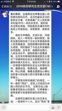 4月3日,永利集团官网2016级研究生召开主题学习交流会,围绕刚刚结束的两会,交流学习心得,加深对两会精神的认识和理解,支部全体党员参加,学习会由支部书记朱洁主持。