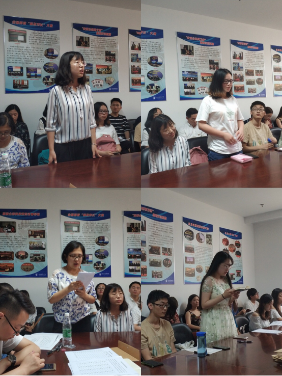 最后,党支部书记李莎莉老师勉励大家,要始终保持共产党员的先进性,立场坚定,旗帜鲜明;甘于奉献,乐于为同学服务;注重集体,关注他人,具有崇高的操守和品行,希望大家在“政治面貌”变化的同时能够牢记“初心”,并且随着党龄的增加,要让“初心”愈加丰满和升华。新一批预备党员和正式党员同时表现出了高涨的热情和坚定的决心,他们表示会在未来的学习或工作中会更加努力,以党员的标准严格要求自己,发挥党员先进性和模范带头作用。