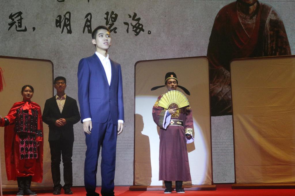 第一个出场的是由永利集团3044官网欢迎您、金融学院、商学院同学组成的子衿团队带来的《少年歌行》。他们是“弱冠弄柔翰,桌荦观群书”的书生,是“弓背霞明剑照霜,秋风走马出咸阳”的侠客。他们有“玉楼金阙慵归去,且插梅花醉洛阳”的风流,有“孰知不向边庭苦,纵死犹闻侠骨香”的刚强,更有“匡复有吾在,与人撑巨艰”的担当。少风姿绰约侠气斐然,诵词激昂正气凛然,承华夏之意气,显少年之风采。