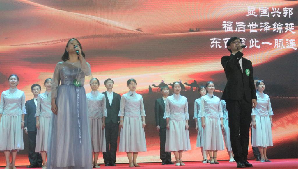 来自永利集团3044官网欢迎您的政逢其时团队精彩演绎了《丝路传韵》。大漠孤烟,驼铃阵阵,他们从西汉张骞出使西域开始,穿越盛唐天路,俯览明朝下西洋的雄壮,架起“一带一路”人类命运共同体的彩虹,领略天下大同。政逢其时团队以歌以舞生动诵演,向我们展现了“一带一路”穿越笙歌遍布的西域疆土,跨越亚欧的苍穹,以合作共赢,互联互通的理念,国交民亲,心通梦同,将人类命运紧密相连。