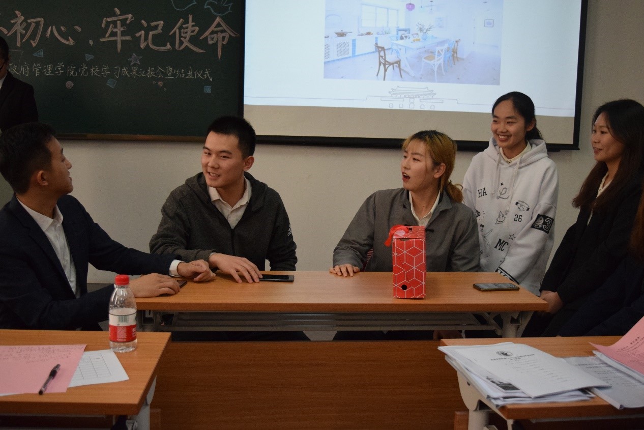 为培养先进的青年马克思主义者,使青年筑牢理想信念,时刻铭记中国共产党“为中国人民谋幸福,为中华民族谋复兴”的初心使命,牢记中国共产党全心全意为人民服务的宗旨,永利集团3044官网欢迎您2019-2020学年党校如期开课。党校致力于培养勇于担当负责,积极主动作为的社会主义事业建设者和接班人。一个多月的学习转瞬即逝,2019年11月27日,永利集团3044官网欢迎您党校暨学习成果汇报暨结业仪式在中财大厦案例教室6隆重举行。党校副校长白云真老师,副院长张剑老师,组织员南琪老师,党委委员李海明老师,学生工作办公室、党校办公室主任张小林老师,2017级、2019级辅导员李磊老师出席本次会议,2019-2020学年党校全体成员参会。