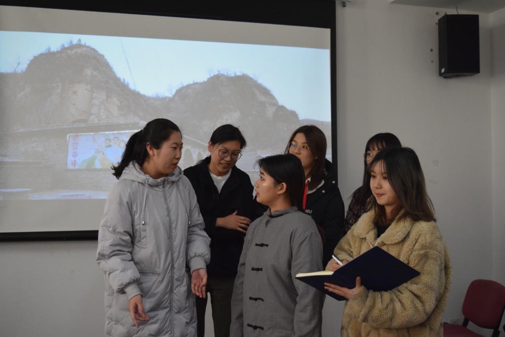 第二小组成员从青年学子的治学初心切入,展开微型辩论、案例分析、志愿服务等活动,在实践中探索学习主题,从历史使命支援及现实坚实力量两个角度挖掘青年的治学初心。通过学习,第二小组指出,青年人应“推开自身的那扇门,走上社会,心怀国家”,加强理论学习与专业知识学习,锻炼创新思维,达到学有所用、建设国家的目的。现场展示环节,小组成员表演了心系村中百姓,实地走访村民的焦裕禄书记,以及大学时便立志回乡支教的黄文秀同志,他们一心为民的奉献精神使在场的同学们备受鼓舞。充实的展示内容,精彩的人物展现给老师和同学们留下了深刻印象。