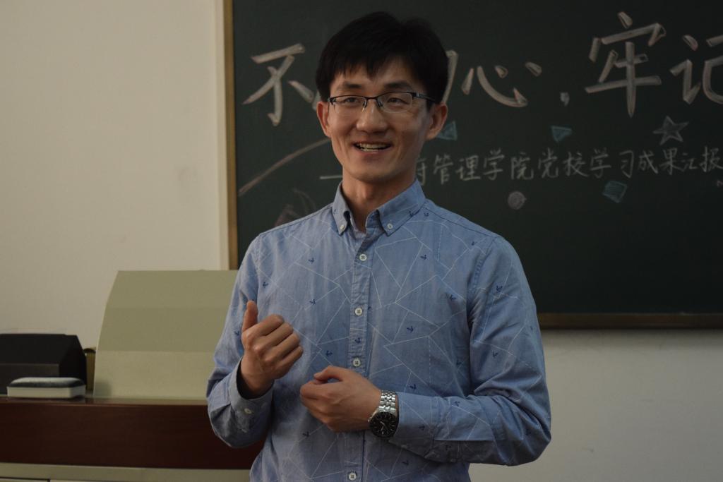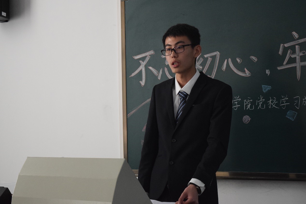 随后,入党积极分子学生代表付禛婧同学上台发言。回忆自己的学习经历,付禛婧感慨中国共产党一路走来充满挑战与艰辛,但共产党人永远坚守内心,始终保持战斗姿态。时代的接力棒已经交到青年人手上,我们生逢盛世,应有信心和能力去实现中华民族伟大复兴。作为中财政管人,作为入党积极分子,共产党的接班人,我们要秉上善若水之志,乘正气浩然之德,保持为中华之崛起而读书的治学初心,胸怀天下格局,关心国家未来,担责任、敢作为、做实事。付禛婧愿同大家一起继续上下求索、秉持初心,成为一名合格的共产党人。