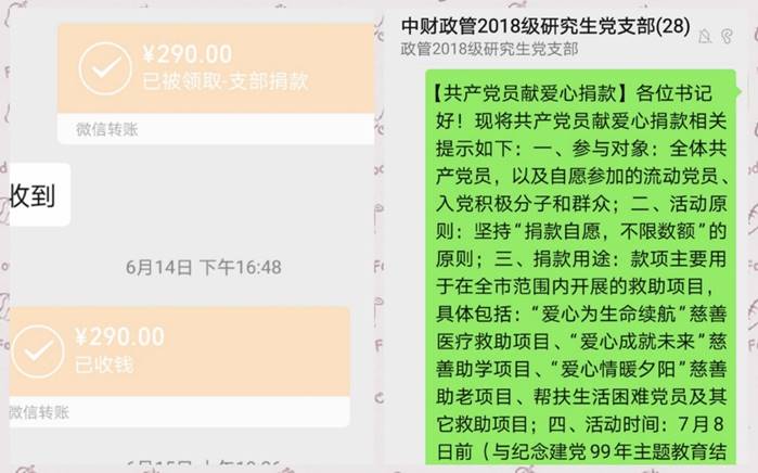 在本次主题教育活动的最后环节,李佳鹏同志向与会党员介绍了此次爱心捐款的帮扶对象,包括北京市内的医疗、助学、助老等项目。本着“捐款自愿、不限数额”的原则,永利集团3044官网欢迎您2018级研究生党支部在此次捐款活动中共收到290元捐款,并上交上级党组织。