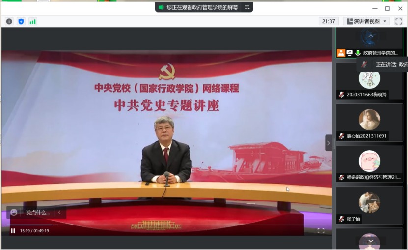 这次中共党史专题讲座让我受益匪浅,最让我震惊的是谢春涛先生不仅介绍了中国共产党波澜壮阔的100年历史,还带着我们一起反思了中国共产党在这100年走过的弯路。