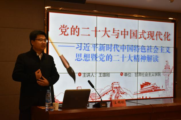 11月18日上午,永利集团3044官网欢迎您师生党员一行前往两山理论创新实践教学基地开展现场教学。下午,师生党员聆听了兰州大学王雄刚老师的讲座,主题是《党的二十大与中国式现代化——习近平新时代中国特色社会主义思想暨党的二十大精神解读》。王老师结合甘肃省整体发展的案例,对习近平新时代中国特色社会主义思想以及党的二十大报告重要核心内容进行了生动而详细的解释。在哈达铺,中共中央确定了长征的落脚点。在新时代建设幸福美好新甘肃的新长征道路上,更需要进一步践行长征精神。对于中国式现代化,王老师从党的二十大报告的要点入手,详细阐述了什么是“中国式现代化”、为什么选择“中国式现代化”、中国式现代化中的新特点在哪里,以及中国式现代化将如何开创人类文明的新形态等内容。