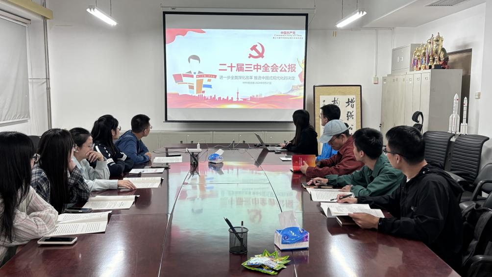 会议伊始,支部书记张涵睿同志带领支部成员和入党积极分子共同学习了党的二十届三中全会公报内容,围绕会议提出的总目标、贯彻原则和工作部署等内容进行深入研讨。