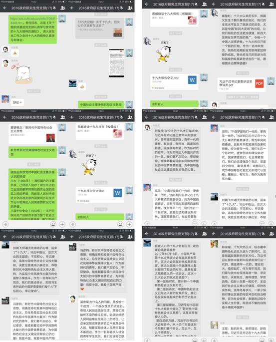 10月18日,党的十九大隆重开幕。永利集团官网2016级研究生党支部积极收看开幕盛况,聆听习近平总书记代表党中央所作的十九大报告,观看后第一时间在线上进行了积极讨论和热议。