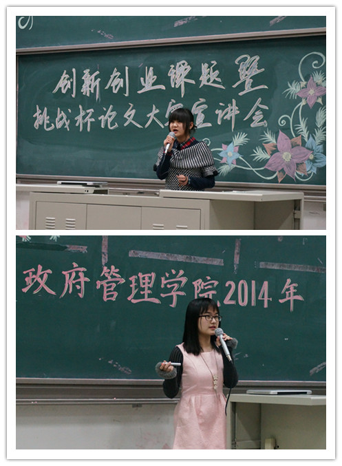 “态度决定高度”、“千里之行,始于足下”,谭翠萍同学的这两句鼓励的话语深深印刻在了同学们的脑海中。至此,本次宣讲会圆满结束,它为同学们对“挑战杯”论文大赛下一步的努力指明了方向,同时使大家更加注重课堂之外的发现与研究。