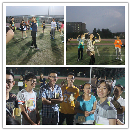 彼此熟悉之后,为更好地让同学们打成一片,更为有趣的“拼钱”游戏开始了:男生充当“2块钱”,女生充当“1块钱”。围成圈的队员们根据队长说的钱数,互相组合组成相应的数字,不符合要求的同学要进行才艺表演。这次游戏的主动权完全从13级同学转到14级新生的手中。优美曼妙的舞姿、动感十足的歌曲、诙谐幽默的笑话……各各同学尽显才艺,享受这个快乐美好的夜晚。