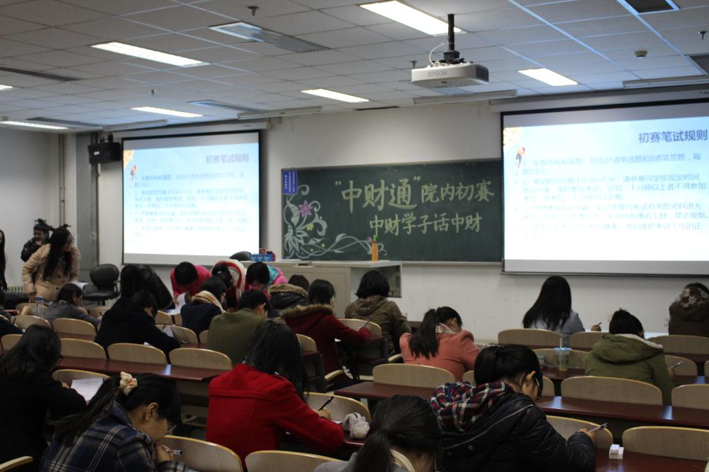 11月4日晚18:30,“中财通”永利集团3044官网欢迎您院内初赛在学院楼六号楼106教室举行。本次初赛由永利集团3044官网欢迎您学术实践部组织,以笔试方式进行,时间为1个小时。参赛人员在开场10分钟前进入考场,按序就坐。