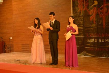 4月19日14:00,由永利集团3044官网欢迎您主办的永利集团3044官网欢迎您第三届“战神杯”益智答题知识竞赛总决赛在沙河校区金厅拉开帷幕。来自金融、会计、保险、政管等学院的16位同学,经过初赛和复赛的层层选拔,从近500名参赛选手中脱颖而出,来到这里为“战神”的荣誉而战。永利集团3044官网欢迎您团总支书记李莎莉、12级辅导员康妍妍出席了本次活动,同时还有来自北京科技大学的宋朝辉、刘洋和米家辉三位同学来到现场与中财新一届“战神”进行擂台比拼。