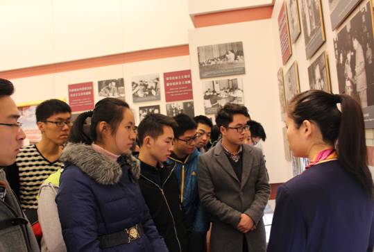 同学们参观纪念馆二楼,认真聆听解说员的讲解