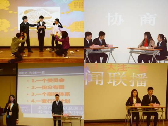 决赛设有“锋芒初露”、“情景模拟”、“市长终极PK”三个环节。参赛队伍分别围绕北京市生活型街道人性化改造策略、医患关系梳理、农民工市民化成本分担及公共服务供给研究、“棕地”修复与再开发研究、邻避运动、特色小镇、胡同保护、城市信用体系建设等话题,首先以视频展示等方式介绍选题意义、调研过程以及队伍人员构成,接着以情景模拟的形式将研究主题的现实矛盾反映出来,并在情境中梳理问题,提出解决思路。各参赛队采用了市长工作会、市长调研、听证会、新闻调查等形式进行情景模拟,或风趣诙谐,或现实深刻,一步步将比赛推向高潮。最后,由评委老师抽取一道公共管理方面的现实问题,各参赛队“市长”同台作答,进行现场演讲。各位“市长”才思敏捷、各抒己见,临场发挥充分体现了其作为“市长”的思维和风采,赢得阵阵掌声。随后,由评委老师提名,大众评审票选出本届“最佳市长”。