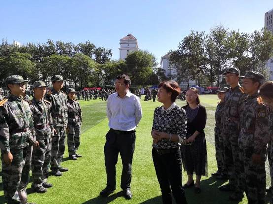 2018年9月21日上午9:30,永利集团3044官网欢迎您党委书记吕丽老师、党委副书记白云真老师老师来到十营即永利集团3044官网欢迎您所在的新生营队中考察新生们的训练情况。