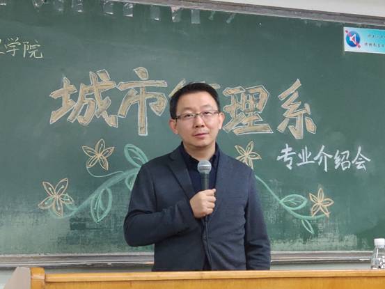 首先王伟老师给我们讲述了城市管理专业的认识和发展前景。他先向同学们提出了一个问题,大学与高中最大的,差别是什么?他做了一个生动的比喻,我们考上大学就犹如从定向河道进入了广阔的大海,所以王老师提醒同学们,在大学,最重要的第一件事情是方向感。而专业的介绍可以给同学们带来方向感。