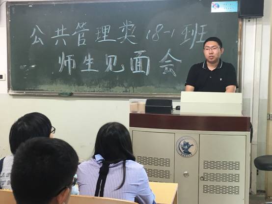 2018年9月12日上午10时30分,永利集团3044官网欢迎您2018级公共管理类1班师生见面会于学院南路主教201举行。永利集团3044官网欢迎您行政管理系副主任兼2018级公共管理类1班班主任崔晶教授、永利集团3044官网欢迎您2018级辅导员刘家琦老师出席了此次会议。