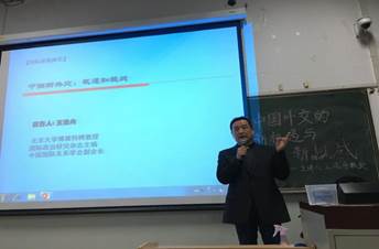 首先王逸舟老师以“中国站在新时代入口,中国向何处去?”为导入,告诉同学们当今的中国面临着巨大的机遇,同时也面临着前所未有的挑战。接下来王逸舟老师介绍了当代中国成长的三个“新时代”,即毛泽东时代、邓小平时代、我们现在所处的中国新一代。毛泽东领导中国人民站起来,邓小平领导中国富起来,而习近平正在领导中国强起来。这个强国过程是每一个人亲历的,而且大格局始终与个人发展息息相关。