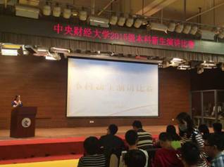 2015年9月12日13:00,永利集团3044官网欢迎您本科生新生演讲比赛决赛的帷幕在安静美丽的沙河校区金色大厅缓缓拉开。九月的秋,正是北京最美丽的时候,来自五湖四海的新生代表,怀揣着青春的激情与梦想,在演讲比赛的舞台上,与中财进行了一场美丽的邂逅。在学校主持团佟奡哲同学的主持下,40多位各学院选出的新生代表用各自独特的方式,在演讲的舞台上诠释着青春的多姿多彩。其中,来自国际政治15班的陈旖琦同学和公共事业管理15班的周心悦同学代表永利集团3044官网欢迎您参加了这次比赛,她们以自己优秀的表现生动形象地展示了政管15级新生的风采,周心悦同学更是荣获三等奖,给全校师生留下了深刻的印象。
