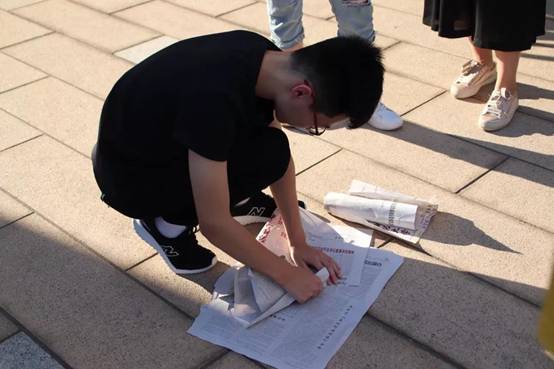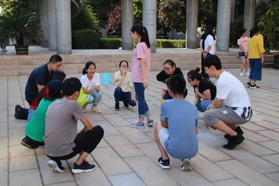 首先,每个小组的组内进行了名为“心胀病”的自我介绍类游戏,大家互相认识了解,游戏气氛轻松而愉快。随后进行的“踩报纸”、“五角一块”、“大风吹”、“闹钟炸弹”等游戏也得到了大家的一致好评,输了的同学进行真心话大冒险的惩罚,或是背着小组成员绕着场地跑,或是男生之间深情对视,或是一起跟着“卡路里”的节奏摇摆,或是接受他人来自灵魂的叩问,在活动的逐渐进行过程中,同学们不再害羞、拘谨,大家在欢声笑语中度过了一个美好的下午。