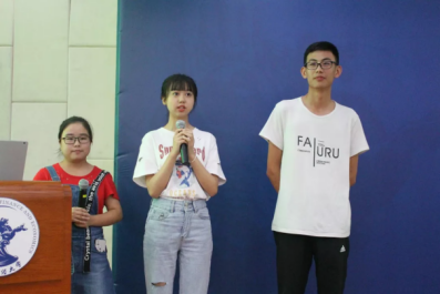 宣讲会第三项是本次宣讲的重头戏,各个部门以及学生社团的集体宣讲,学生会办公室、青年志愿者协会、文体部、新媒体中心、学术实践部、组织部、红叶国际关系协会、公共管理研究会、辩论队、男篮女篮、足球队、礼宾队、主持团等部门一一介绍了部门职能、加入部门的福利以及招新要求等,丰富多彩的ppt展示、精彩有趣的宣传视频、各具特色的介绍风格都吸引着同学们的目光,赢得阵阵掌声和欢笑。