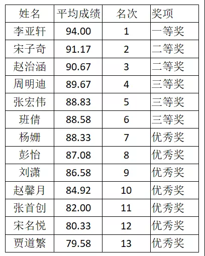 经评审严谨打分和讨论,现公布比赛结果如下: