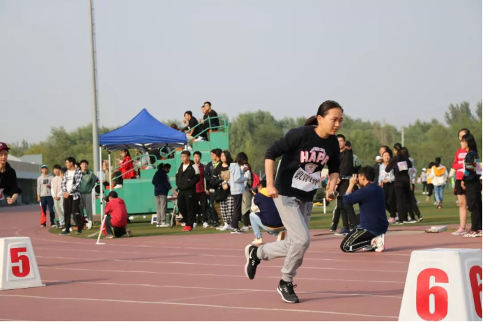 下午3:30,沐浴着秋日的暖阳,政管代表队的同学们来到了袋鼠跳的赛场。二十位同学分成两队,接力完成袋鼠跳,力争在最短的时间内完成任务。同学们奋力向前跳,发丝拂面不顾,旁人说笑不顾,他们矫健的身影起起落落,带着政管人的坚韧与团结,背负着政管的荣誉,他们一往无前!