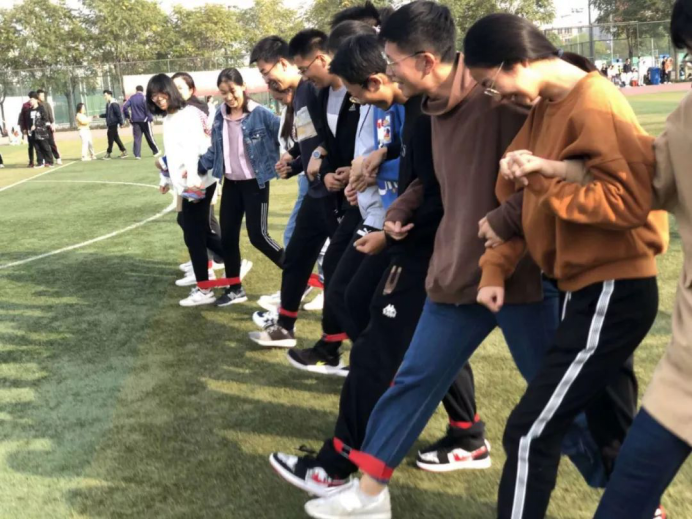 绑腿跑作为第一个开赛的团体项目,对同学保持高昂士气与信心至关重要。10月23日下午2:00,二十位同学斗志满满,组成政管学院代表队,来到绑腿跳检录处检录。同学们利用候场时间,练习出腿、口号,并及时调整战术,力争提高速度,节省时间。2:30,备受瞩目的绑腿跳比赛正式开始。整理好粘带后,但听哨声为令,二十位同学一齐向前冲出。比赛中,同学们默契配合,相互理解,及时调整,脚挨脚,心连心,为政管而战的他们是赛场上最耀眼的光。