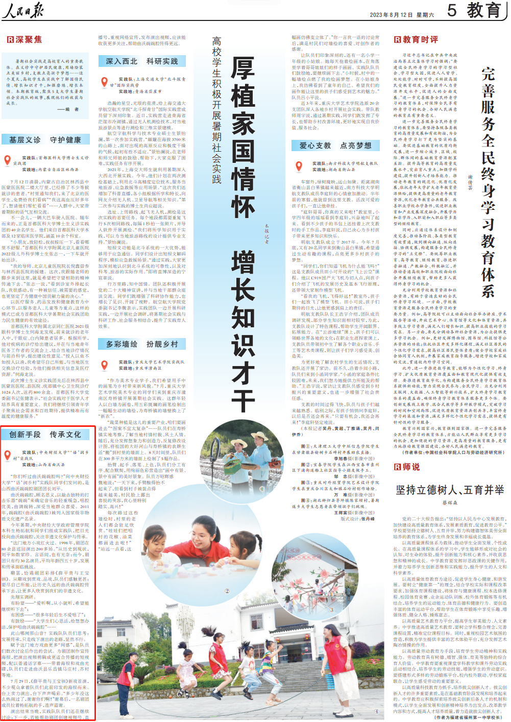 2023年8月12日,在《人民日报》刊发的文章《厚植家国情怀 增长知识才干 (深聚焦)》和共青团中央发布的公众号文章《大学生暑期社会实践,原来可以这么干……》中,永利集团官网“‘语’润乡村”社会实践团队均获得到了报道关注。