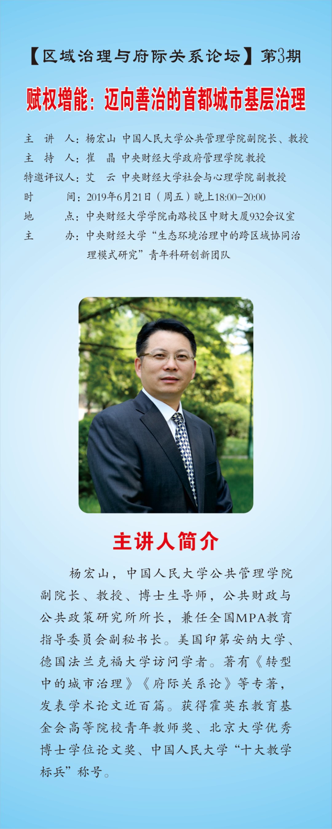 主 讲 人:杨宏山 中国人民大学公共管理学院副院长、教授