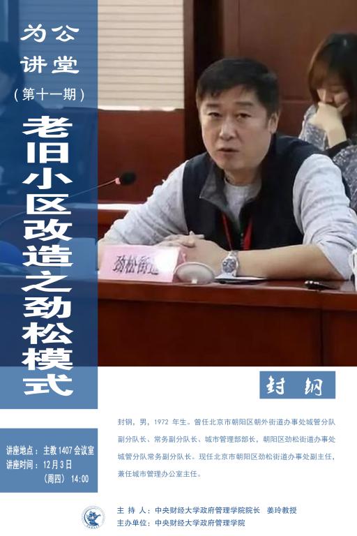 嘉宾简介:封钢,男,1972年生。曾任北京市朝阳区朝外街道办事处城管分队副分队长、常务副分队长、城市管理部部长,朝阳区劲松街道办事处城管分队常务副分队长。现任北京市朝阳区劲松街道办事处副主任,兼任城市管理办公室主任。