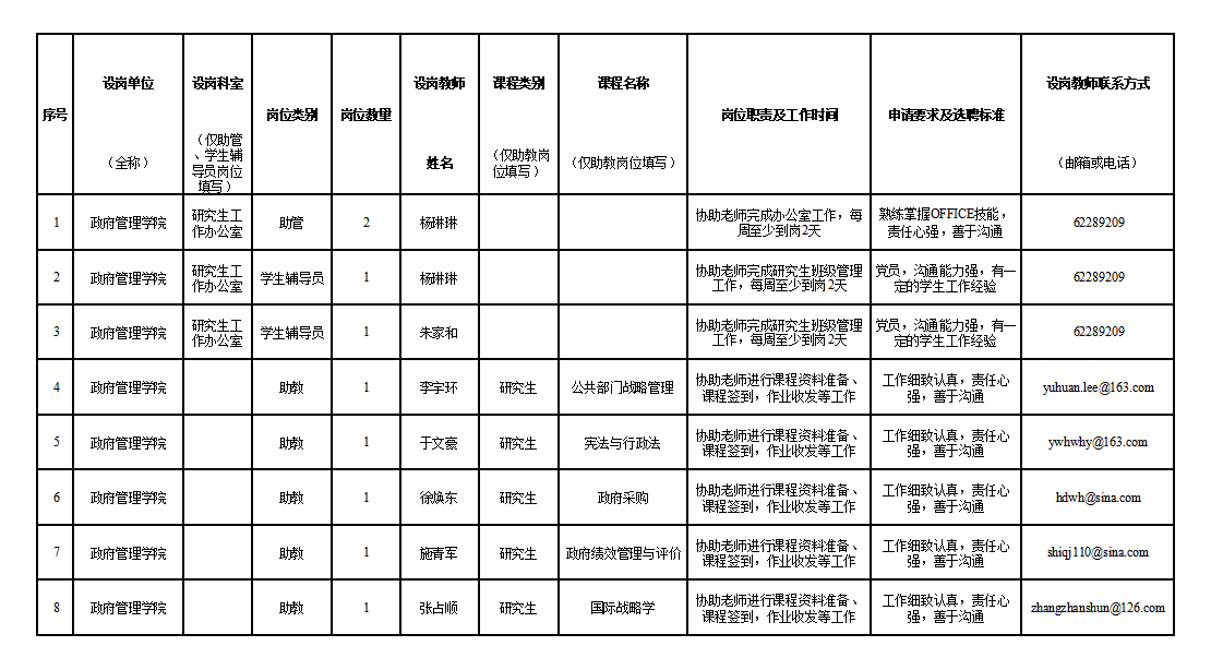 永利集团3044官网欢迎您2023-2024学年第二学期“三助一辅”设岗情况表
