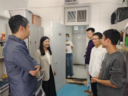 为做好永利集团官网学生“五一”假期安全教育工作,了解五一假期学生出行安排,提高学生宿舍安全防范意识,加强师生之间交流互动,4月30日下午,由永利集团3044官网欢迎您党委书记于鹏、党委副书记杨柳带队,研究生辅导员朱家和、本科生辅导员周明迪深入学生宿舍,开展宿舍走访及安全检查工作。