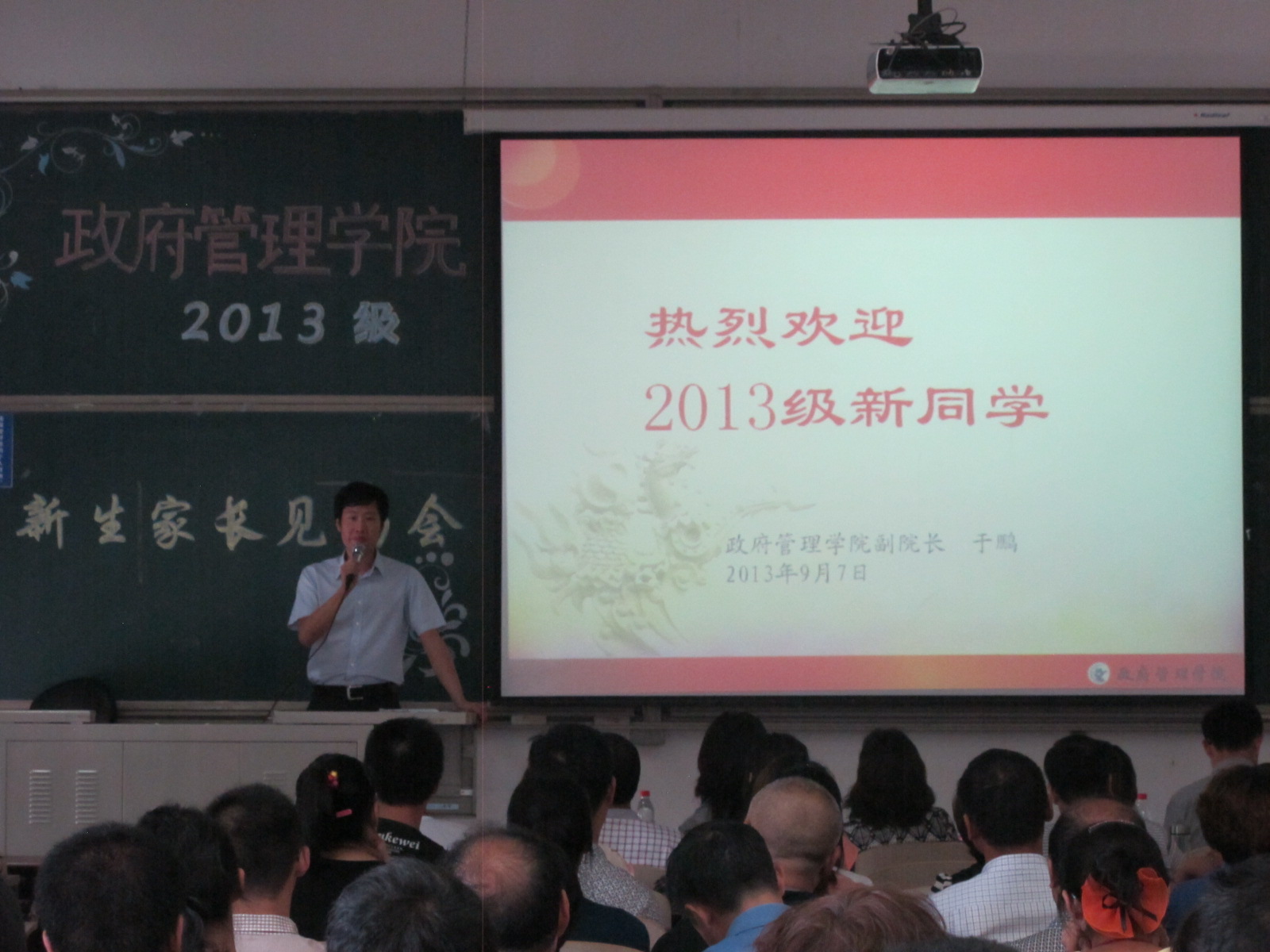 阵阵掌声过后,副院长于鹏上台发表重要讲话。他亲切又细致地介绍了学校和学院工作情况。表示永利集团3044官网欢迎您的成立和发展顺应政府改革的历史潮流及经济社会对公共人才的需求,处于蓬勃发展阶段。紧接着,他分别深入介绍永利集团官网的学科发展、师资队伍、国际合作和研究生教育,让大家对学院有了初步认识。在学院本科生培养特色方面,副院长于鹏提出“一个中心、五个基本点、内涵提高、特色强院”的宗旨目标,展开介绍永利集团官网本硕博升学通道、学科优化、教学管理、导师制等多种特色。学院品牌活动和丰富多彩的学生活动也极大地提高了新生及家长的期待值。对于大家关注的就业方向问题,副院长于鹏也一一详细介绍:考研、出国留学、公务员等多重选择让新生对自己的将来有了大致的了解。一个多小时的讲话结束,台下报以热烈掌声,在座各位都对这个可以施展才华、收获真知、积极向上的学院充满希望。
