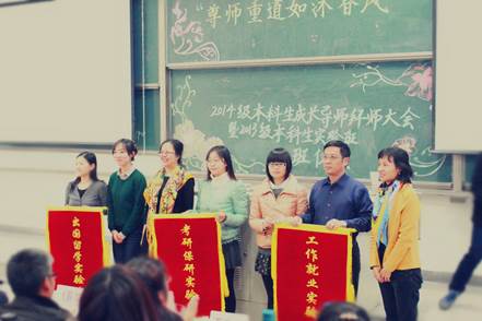 一掌香茗暖心扉,膏土方耘辟新天。2013级本科生实验班开班仪式在拜师大会结束后隆重举行。副院长于鹏介绍了实验班创办的相关情况。“在自然班体制下,传统导师制度的不足难以被克服;同学们的广泛需求与老师的研究领域存在矛盾;本科生考研比例不理想……”于鹏老师指出:“为了解决这些难题,学院创新教育教学模式,在大二时根据同学们的不同需求,分设考研保研、出国留学和工作就业三个本科实验班,从而塑造差异化的培养模式、构建三个维度的立体式培养结构,践行一体化的培养理念。”在热烈的掌声中,于鹏老师宣布2013级本科生实验班成立,党总支书记吕丽向实验班师生代表授开班锦旗。