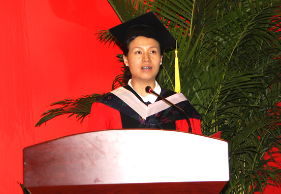 在热烈的掌声中,赵景华院长上台致辞。赵院长首先对同学们顺利完成学业,获得相应的学士学位、硕士学位或博士学位表示衷心的祝贺,向辛勤哺育同学们成长的家长、悉心教导同学们成才的老师表示诚挚的感谢。接着,赵院长回顾了学院自2011级本科生进校时的特殊时间节点——建院5周年以来的发展历程,指出在已有成绩的基础上,学院学科布局更加合理,学科特色更加鲜明,以四大专业特色浓郁的品牌学生活动为代表的第二课堂开展得有声有色,有力地促进了同学们的成长成才。2013级研究生入校以来所举办的国际研讨会,在全国MPA论文评选中斩获佳绩,国际领导力研修班的开展,国家级学会落户永利集团官网,无一不彰显永利集团官网人才培养所取得的成就和学术影响力的显著提升,由此指出虽然学院成立时间不长,但取得了长足的进步,这与每一位老师和同学的辛勤努力是分不开的,每一个“中央政府人”都有理由为之感到骄傲和自豪。赵院长对毕业生们嘱托道,当今的中国已经处在一个转型的十字路口,经济、社会、环境等各个方面都已经进入发展的新常态。国家的“一带一路”倡议和反腐倡廉给同学们带来了新的发展机会,在同学们离校即将踏上新的征程之际,希望同学们能做到牢记院训,守住底线;充满希望、敢于担当;学无止境,虚心求索。告诫同学们既要志存高远,积极进取,但又要守住规则,追求具有精神意义和一定境界的卓越和成功;只要同学们满怀希望,坚韧不拔,敢于担当,勇于创新,向着天穹勇敢地飞翔,就能实现自己的梦想;世界那么大,要去探索和发现,去了解那些已知的未知和探索未知的未知,虚怀若谷,谦虚谨慎,边干边学,才能无限向心灵的自由王国驶进。
