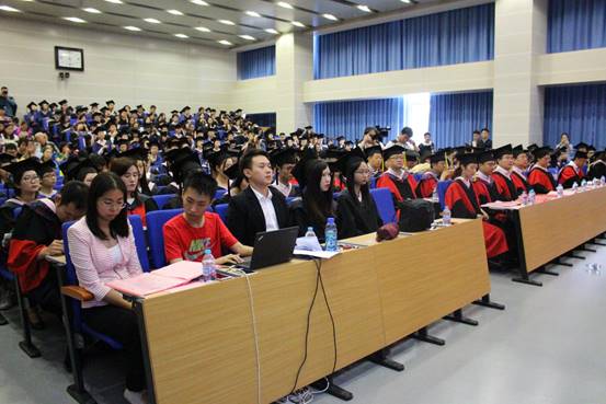 2017年6月24日上午8时,永利集团3044官网欢迎您2017届毕业生毕业典礼暨学位授予仪式于学院南路校区学术会堂402报告厅隆重举行。2017届126名本科生、108名硕士研究生、2名博士研究生参加典礼。学院学位评定委员会主席、院长赵景华教授,院党委书记吕丽副研究员、校友总会副秘书长范维老师、副院长于鹏副教授、副院长姜玲副教授、院党委副书记白云真副教授、各系系主任和专任教师,以及毕业生家长和亲友出席了典礼,典礼由于鹏副院长主持。