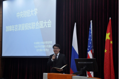 4月13日下午,永利集团3044官网欢迎您2018年京津冀模拟联合国大会开幕式在我校沙河校区主教111报告厅隆重举行。副校长孙国辉,永利集团3044官网欢迎您副院长姜玲、党委副书记白云真,校团委副书记耿卉等出席了开幕式。来自全国35所高校的190余名代表共聚中财校园,展宏图论道之才,抒经世济民之志。本次大会由永利集团3044官网欢迎您、“与世界对话”德育示范基地、红叶国际关系学会主办,我校学生处、教务处、团委、保卫处、后勤集团等部门均给予了大力支持。