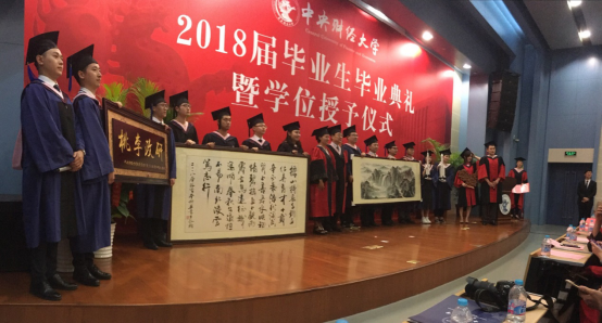 典礼进行第八项,2018届新校友接收仪式。学院推选出八位同学作为校友大使,院长赵景华教授和校友总会副秘书长李松莉老师向他们颁发大使聘书,并赠送礼包。从此,245位永利集团3044官网欢迎您毕业生正式加入中财校友大家庭,永利集团3044官网欢迎您校友总会和80个海内外校友分会也将会成为他们未来发展的重要支撑。